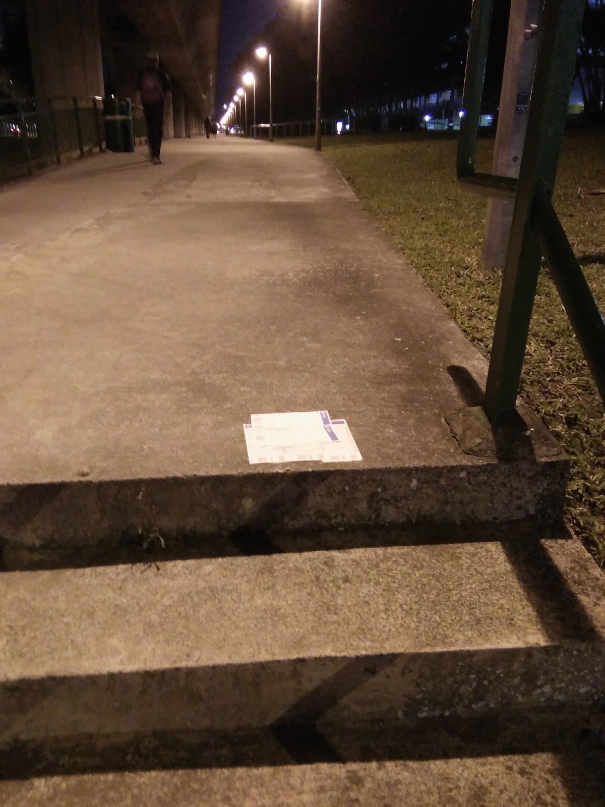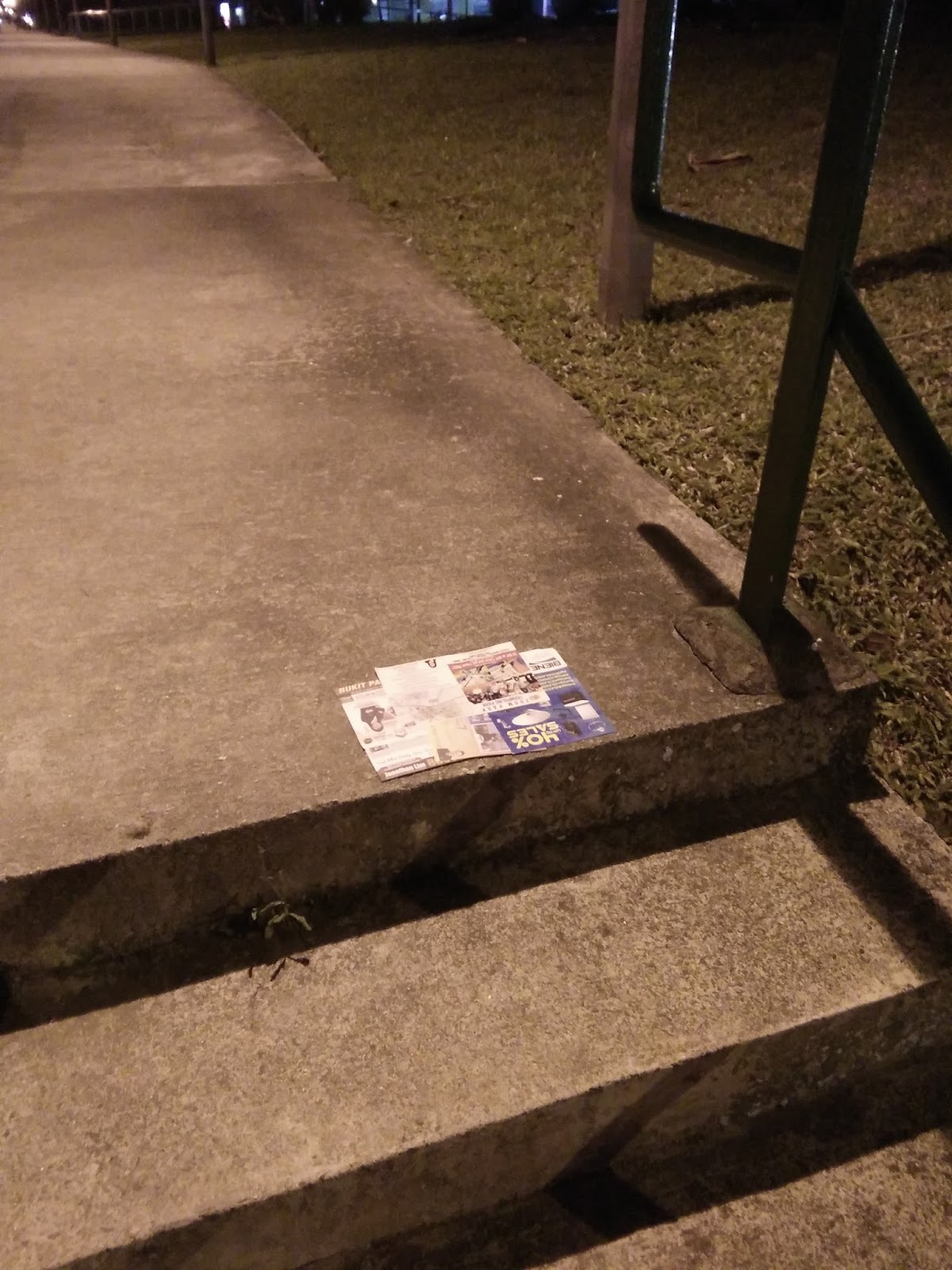 Below are one week's of litter in this little corner in Marsiling Yew Tee. The culprit, a pinoy, used the pieces of paper to keep his backside clean while waiting for his company's bus. When the bus came, he scoot off, leaving the litter behind. This thing has been going on for at least a year and the litter would accumulate all along the path and grass patch on the right when the wind blows.