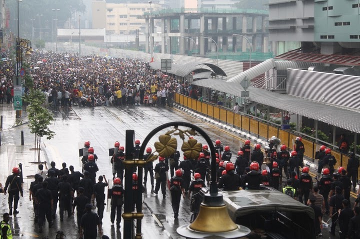 By all means, the Rally today is going to turn into a confrontation that can become ugly. The police are there to prevent the Rally from taking place, by order of the BN govt. So which side would the police take in a flare up or when the Bersih supporters approach the Merdeka Stadium?