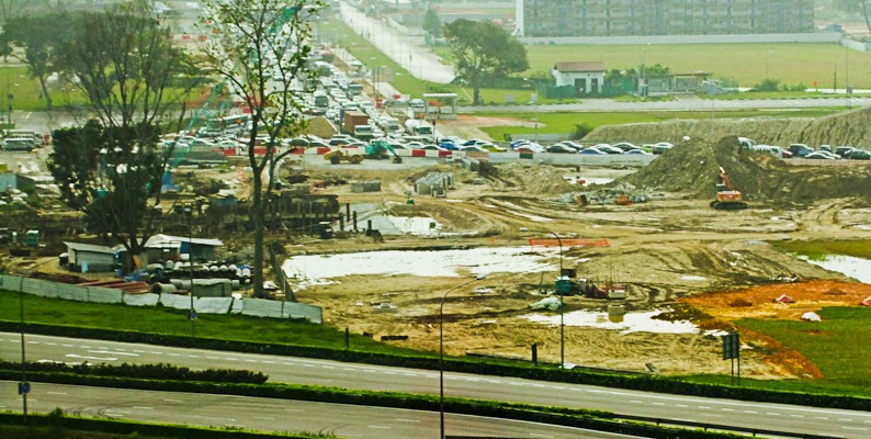 The cause of the traffic snarl was likely due free moving highway traffic converged and came to an abrupt halt at the traffic light. At this junction, traffic turning left towards MBFC and Lau Pa Sat entered a two lane road that was subsequently widen by the removal of concrete road dividers into 3 lanes. That did not really help that much and the 2 to 3 km jam was cleared only in mid afternoon.