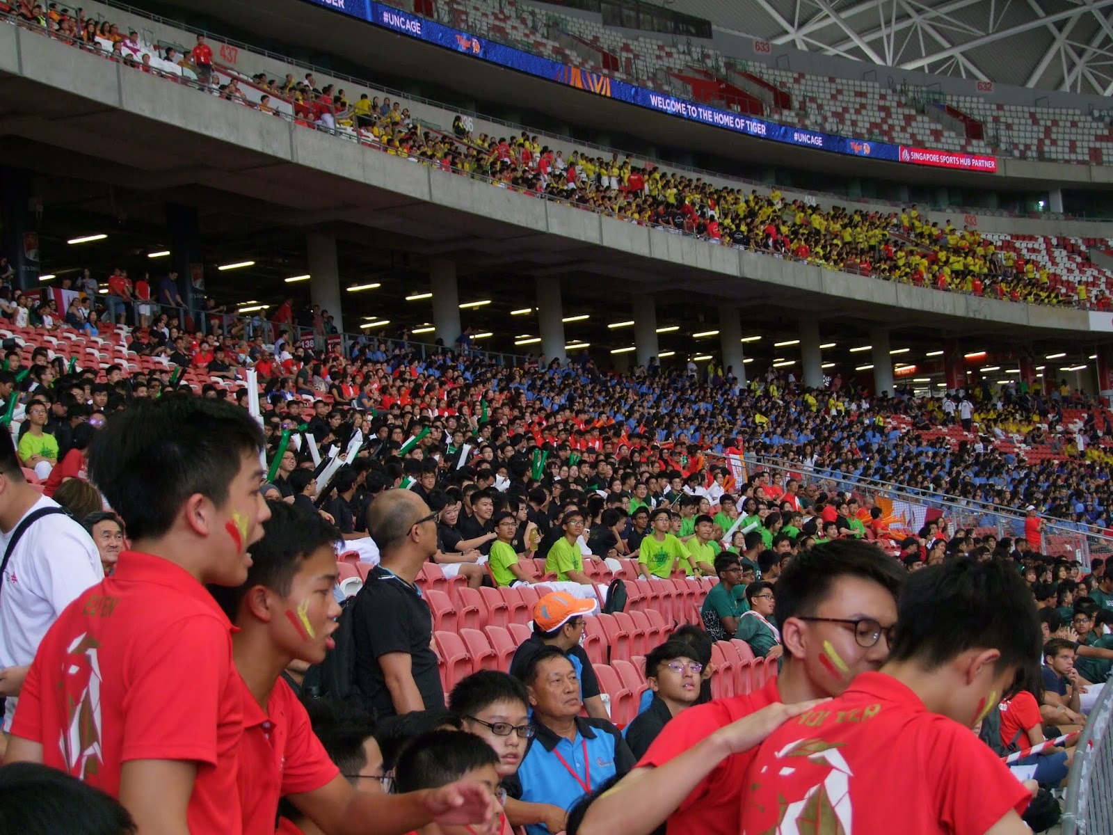 These are some of the pics taken at the Singapore Open on 29 Mar, the final day of this International Meet with competitors from Japan, South Korea, Hongkong, Taiwan and our neighbouring Asean countries. The schools sent in their supporters en mass to cheer their school representatives competing among the men and women in the various events. The school supporters and their parents contributed to an otherwise empty stadium and boosted the spirit of the game.